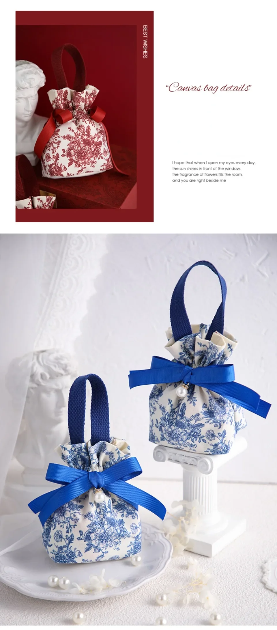 20pcs Wedding Candy Bags Handmade Knit Drawstring Handbag Birthday Party Mini Casual Red Gift Packaging Bag Student Reusable