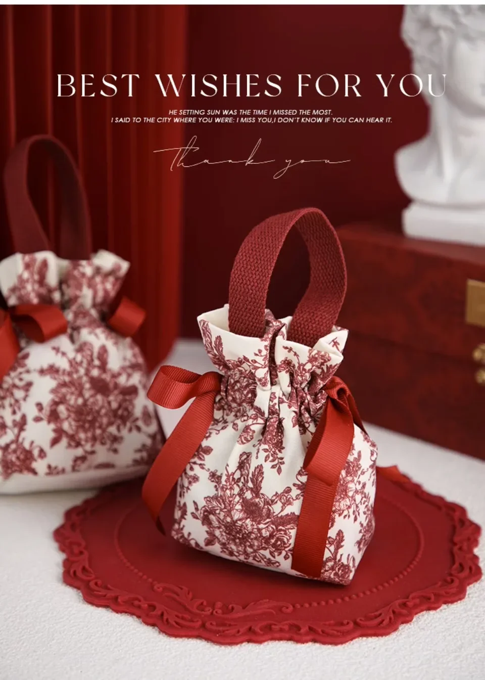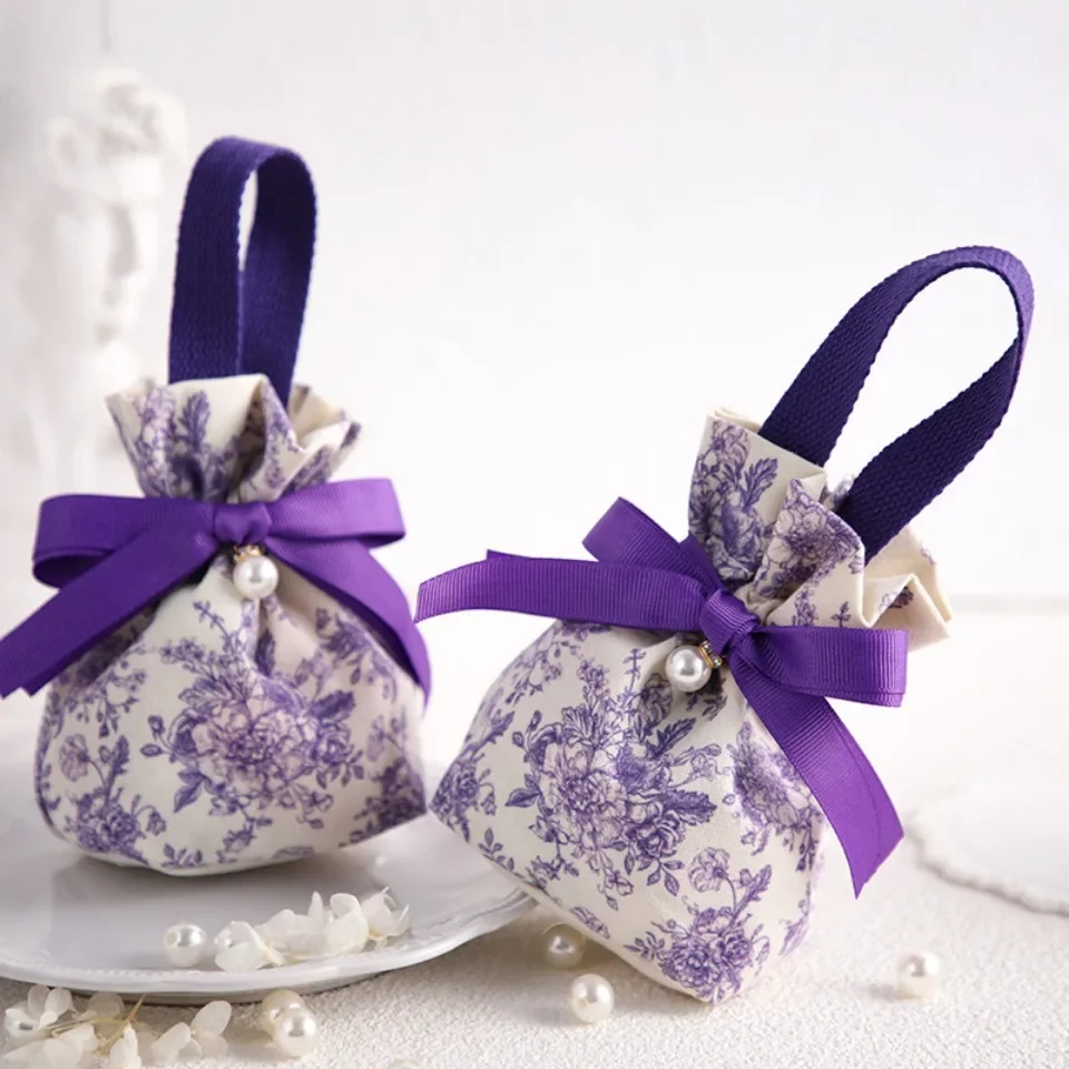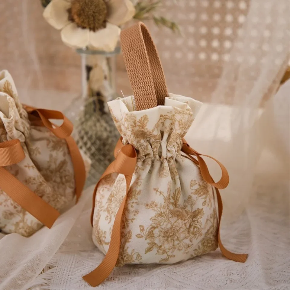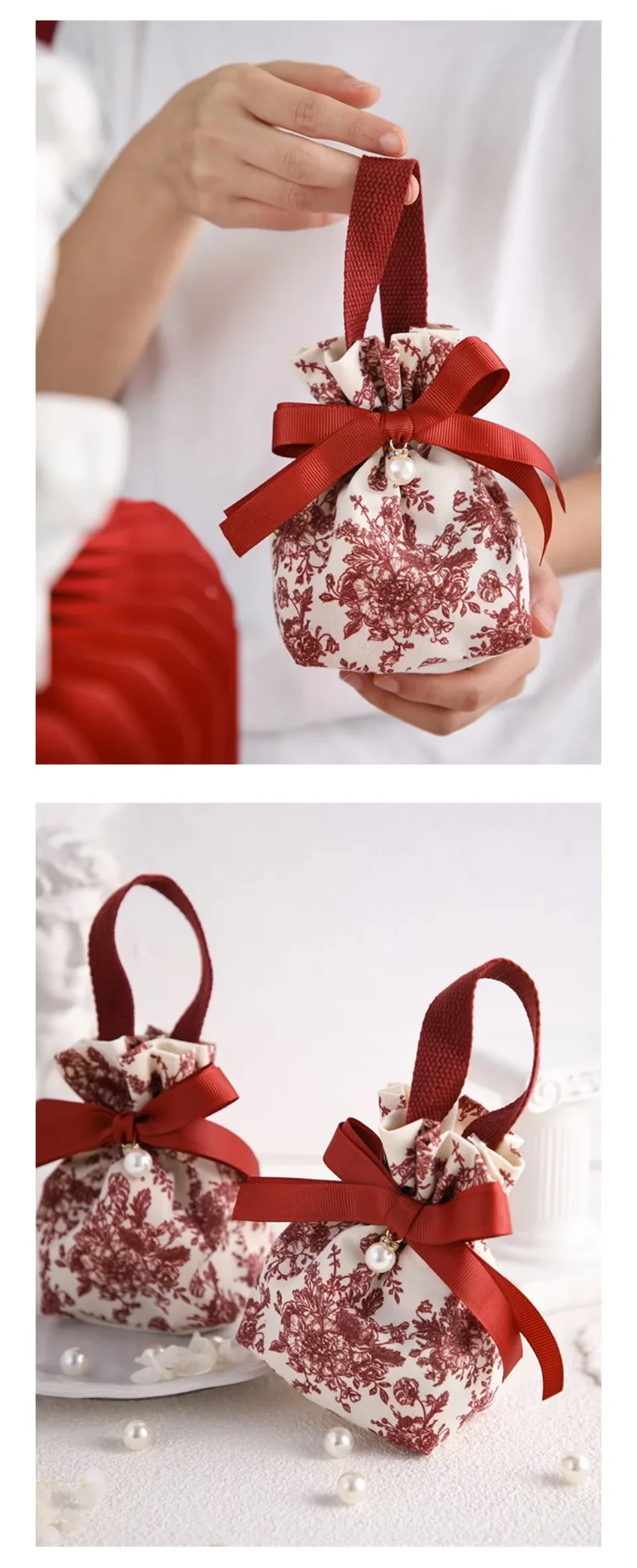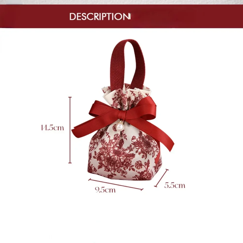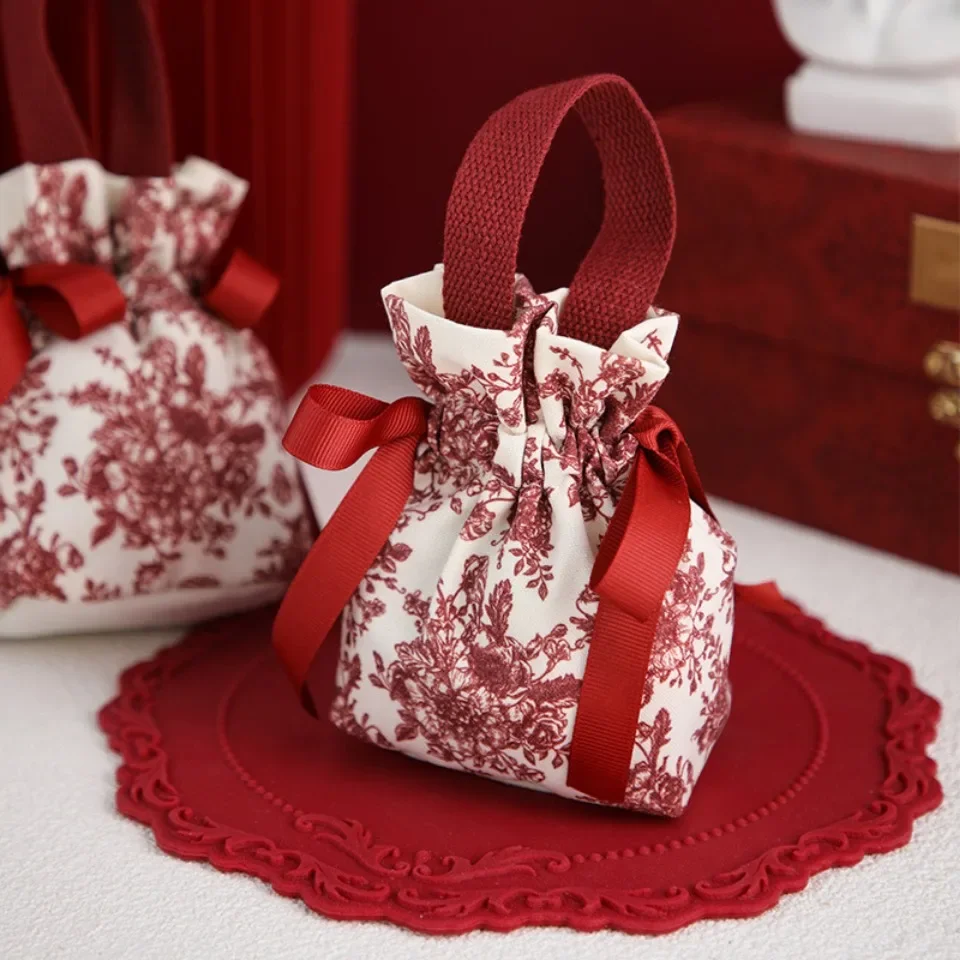 20pcs Wedding Candy Bags Handmade Knit Drawstring Handbag Birthday Party Mini Casual Red Gift Packaging Bag Student Reusable
