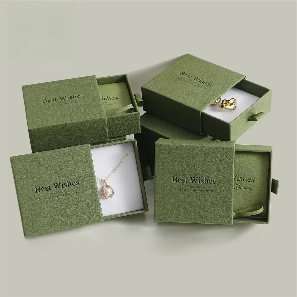 50pcs 9*9*3.2cm Paper Drawer box Personalized DIY Slide Jewelry Packaging Storage Case Bulk Custom Box Cardboard Necklace Carton