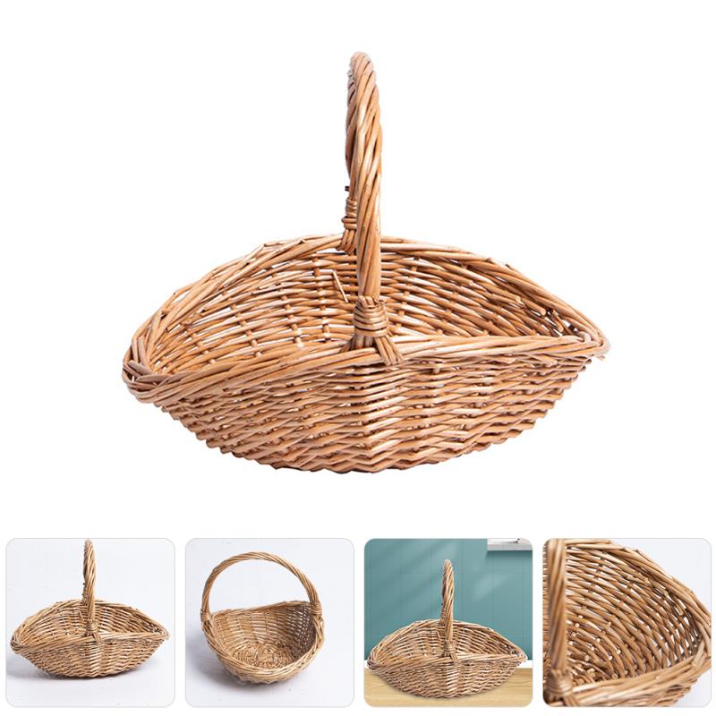 Natural Wicker Easter Egg Basket Versatile Storage Picnic Baskets Camping Accessories Wear Resistant Fruit Baskets Home
