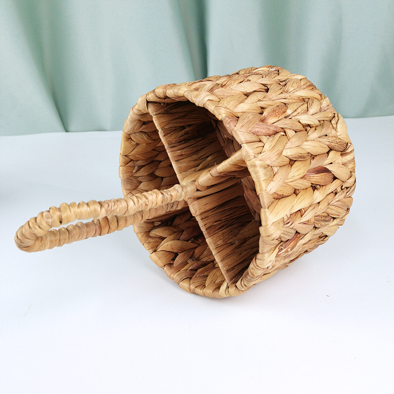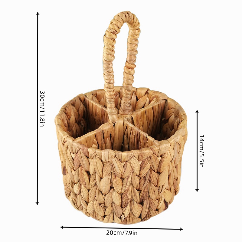 Rattan Wicker Storage Basket Hand Woven Flatware Organizer Round Storage Box Water Hyacinth Storage Basket Cutlery Holder
